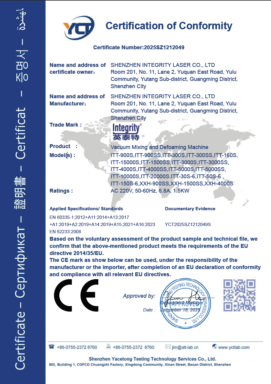 Shenzhen integrity Laser Co., Ltd. Is a company with strong R & D strength of the company, is China's leading planetary mixing, bubble machine manufacturer.We focus on customer needs continuous innovation and R & D in LED optoelectronics, silver,nano-powder materials, ceramic powder, high viscosity coatings, high, sharp,Mixed refined products in the field of….